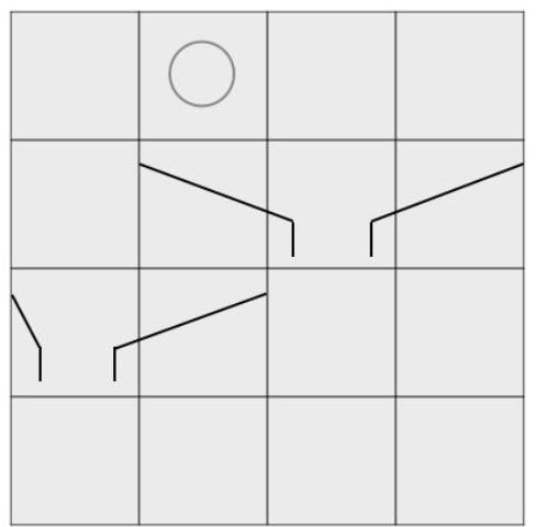 有一天,Alice 发现很难击回球,因为一个球可能到达底部的任何方格。Alice 决定在板子上适当地放置一些以下的装置,使得底部只有一个方格是球可能到达的。